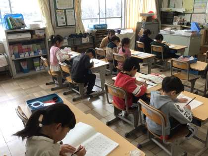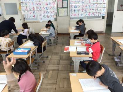 1年生国語では、「ひらがな かたかな」ノートを使って、丁寧に書く練習をしました。一文字ずつ、しっかり書こうとする姿が見られました。