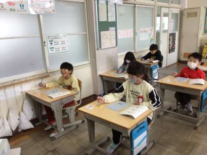 1/10 2年生書写 公開日 2025/01/10 更新日 2025/01/10 各学年から 今日の2年生書写では、水筆を使って「はらい、はね、とめ」に気をつけて書くことができました。3年生からの毛筆の練習にもなるので、子どもたちは、頑張って書く姿が見られました。