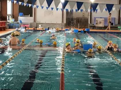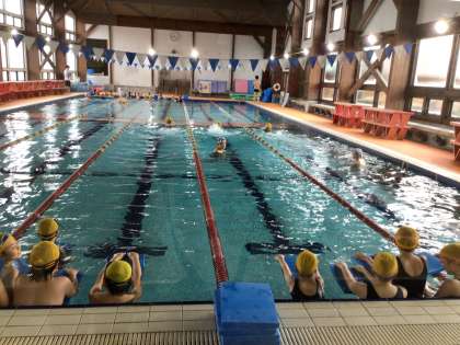 先週に引き続き、2回目のスイミングスクールでの水泳学習です。スイミングスクールのコーチにクロールのポイントを教えていただきながら練習をしました。