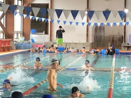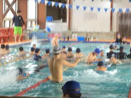 1/15 6年体育1 公開日 2025/01/15 更新日 2025/01/15 各学年から 6年体育は3、4限に豊田スイミング平芝校にて水泳です。バス3台に分乗して出かけました。ビート板を用いてクロールの練習をした後、平泳の足の動きを練習しました。