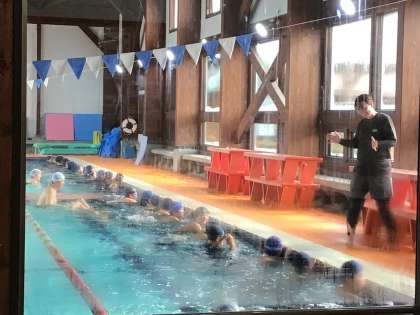 1/15 6年体育2 公開日 2025/01/15 更新日 2025/01/15 各学年から 平泳ぎの足の動きを何度も練習した後、ビート板を使って泳ぎました。なかなか進まない子もいましたが、少しずつ慣れてきたようです。