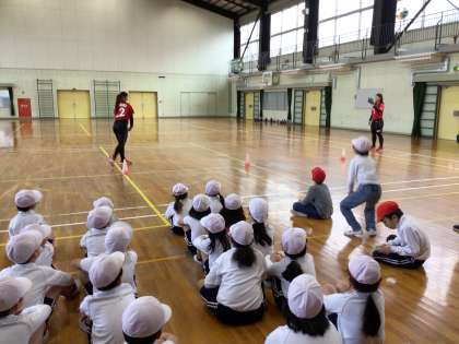 1/15 2年体育1 公開日 2025/01/15 更新日 2025/01/15 各学年から 今日の午後はトヨタレッドテリアーズの選手2名によるソフトボールの投げ方教室を開催しました。選手による投球を見たり、投げ方のポイントを教えてもらったりした後,5箇所に分かれてソフトボールを投げる練習をしました。