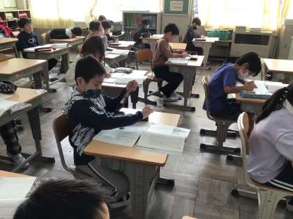 説明文「カミツキガメは悪者か」の学習をしました。カミツキガメが自然の中にいることはどんな影響を与えるのか、カミツキガメはなぜ日本で増えてきたのかなどこれまで読み取ったことを確認した後、題名について考えました。さて、カミツキガメは本当に悪者なのでしょうか。