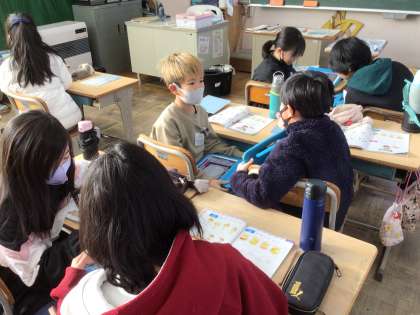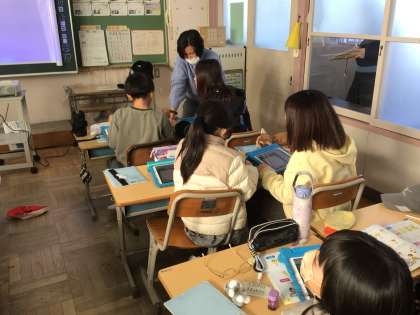 1/17 4年生外国語活動 公開日 2025/01/17 更新日 2025/01/17 各学年から 今日の4年生外国語活動「ピザをつくろう」では、ALTの先生と一緒に、ピザの材料で何が欲しいか、何ピース欲しいか等英語で話をしました。学習用タブレットを使ってピザをつくりました。