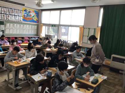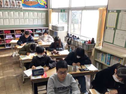 6年算数では、「長さ、面積、体積の単位の関係をまとめよう」というめあてで学習を進めていました。小学校でたくさんの単位について学んでいます。例えば1m=100cmのような関係をまとめていました。中学校に進学するまでに単位の換算を必ずマスターしておきましょう。