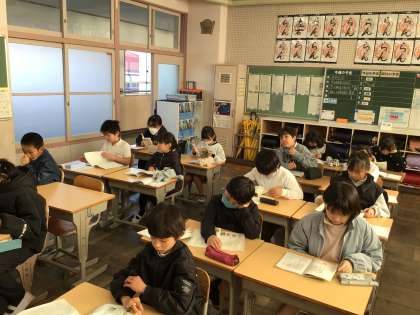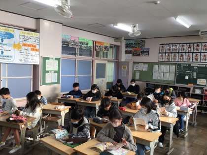 時間を意識して朝の支度をしていました。8時半になるとどの学級も静かに読書が始まりました。
