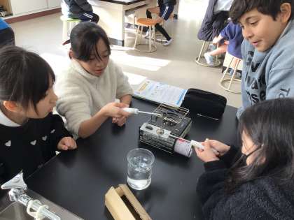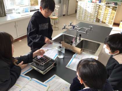 1/21 4年理科 公開日 2025/01/21 更新日 2025/01/21 各学年から 4年理科では、ものの温度と体積の単元を学習しています。金属球を熱して体積の変化を確認する実験を行いました。その後水で金属球を冷やした後についても確認をし,実験からわかることを理科ノートにまとめました。