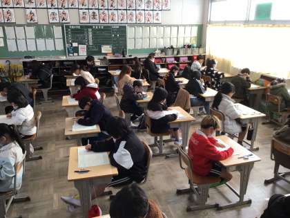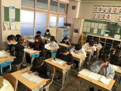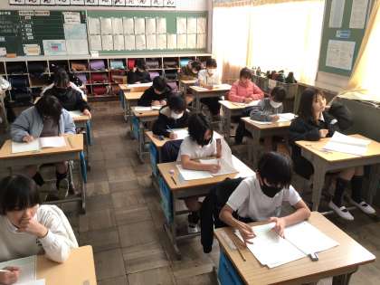 今日の2限は算数の学力検査を実施しました。集中して問題を読み、解いていました。