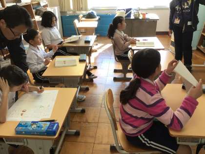 2年生国語、国際学級では、「くらべてつたえよう」の学習をしています。文章を読んでから、伝える文章を書いてみました。