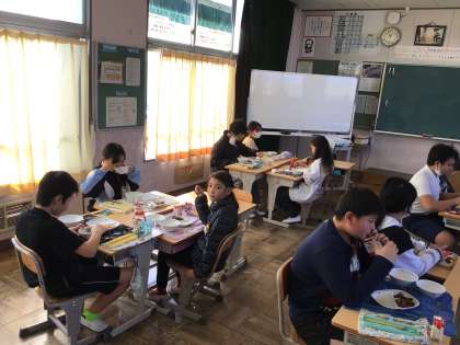 どの学級も楽しく会食をしていました。また、給食の準備や片付けも素早くやれるようになりました。