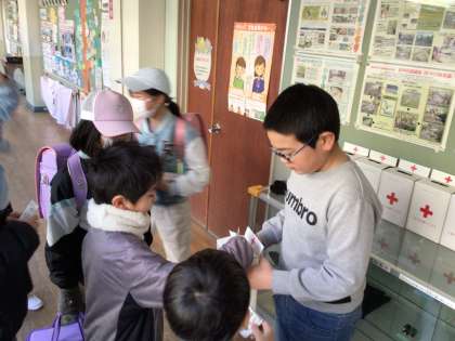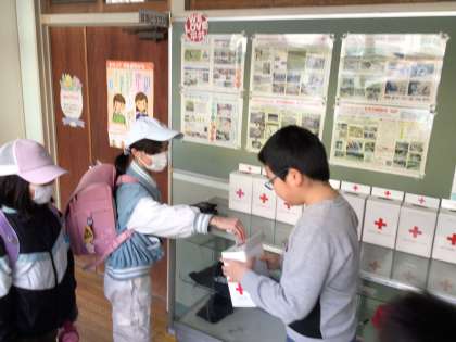 JRC委員会によるお年玉募金が始まりました。登校してきたら、JRC委員のいる1階廊下に来て募金をしていました。明日も募金活動があります。