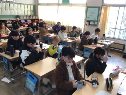 毎週木曜日の朝はフッ化物洗口です。今日もリズミカルな曲に合わせて口内を洗浄しました。