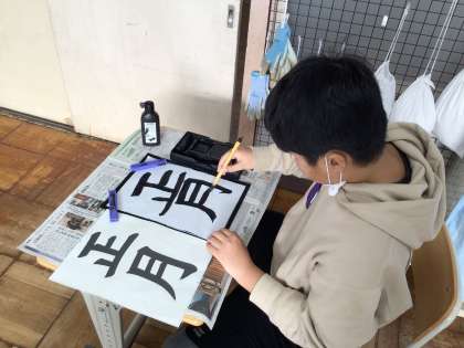 1/23 7・8組書写 公開日 2025/01/23 更新日 2025/01/23 各学年から 7・8組書写では、「正月」という字を練習しました。書き初め大会があったので、久しぶりに半紙に字を書きます。2文字をバランスよく書くことを意識して練習しました。