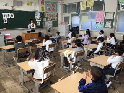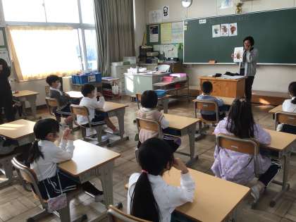 1/23 1年生学活 公開日 2025/01/23 更新日 2025/01/23 各学年から 1年生では、外国語授業はありませんが、英語に親しむ時間を年間数時間か計画しています。今日は、ALTの先生と一緒に英語の学習をしました。いろいろな種類の虫の名前を英語で発音しました。