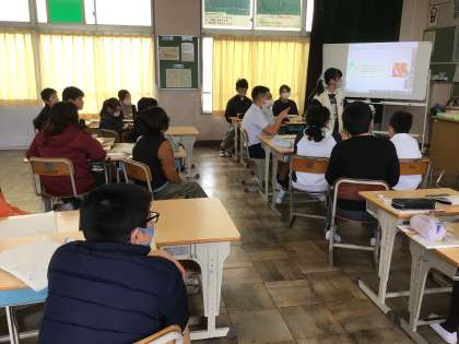 5年生算数では、「割合」について学習しています。比べる量と求める量を見つけ、式をたて考えました。グループや個人で考え、意見を発表しました。