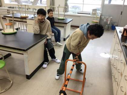 1/28 78組理科 公開日 2025/01/28 更新日 2025/01/28 各学年から 「てこの性質」の学習です。今日は10Kgの荷物をてこで持ち上げました。実験を通して、荷物を下げる場所や力を加える場所を変えると重さが変わることを実感しました。