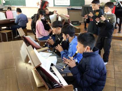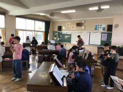 1/30 6年音楽2 公開日 2025/01/30 更新日 2025/01/30 各学年から 「木星」の合奏の様子です。リコーダー、木琴や鉄琴、バスドラムなどの打楽器、オルガンなどさまざまなパートでの合奏です。すごく上手になりましたね。