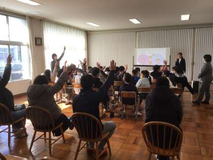 学校保健委員会を行いました。1組と同じように、「心いきいき 元気ハツラツ」というテーマで行いました。