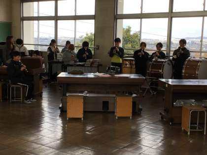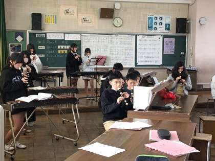 1/30 6年生音楽3 公開日 2025/01/30 更新日 2025/01/30 各学年から 音楽の授業で練習してきた曲を保護者の方に披露しました。1曲目は、「雨のうた」という曲をリコーダーで演奏しました。リコーダーのきれいな音色が音楽室に響き渡りました。