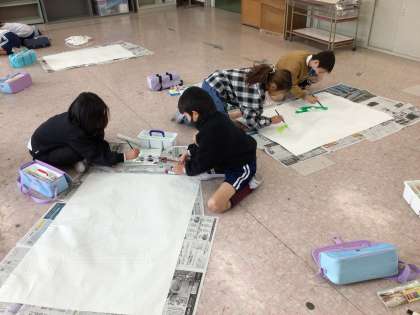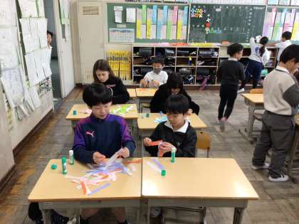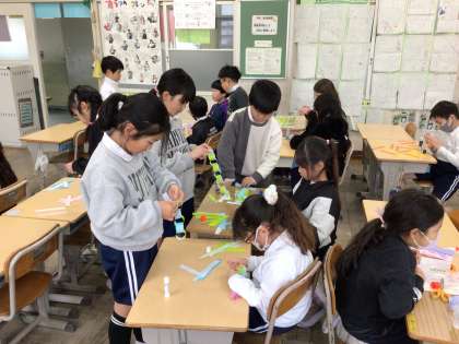 1/31 3年生図画工作 公開日 2025/01/31 更新日 2025/01/31 各学年から 6年生を送る会の飾りをみんなで作りました。輪飾りチームを看板チームに分かれて製作をしました。輪飾りチームは色合いを考えて、きれいにのり付けをしています。看板チームは大きな文字を丁寧に絵の具で塗っています。出来上がりが楽しみですね。