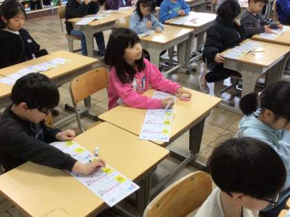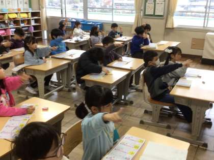 2/3 1年生国語1 公開日 2025/02/03 更新日 2025/02/03 各学年から 1年生国語で、新出漢字を学習しました。漢字ドリルを使って、「田」「千」「百」などの漢字を書きました。一画ずつ、書き順を確認しながら漢字を丁寧に書く姿が見られました。