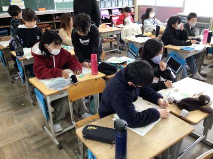 相手が納得するような理由を吟味する学習です。今日は「映画は家で観るよりも映画館で観た方がよい」という考えの理由についていくつかある中から、どの理由が相手をより納得させられるかを話し合いました。