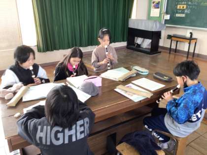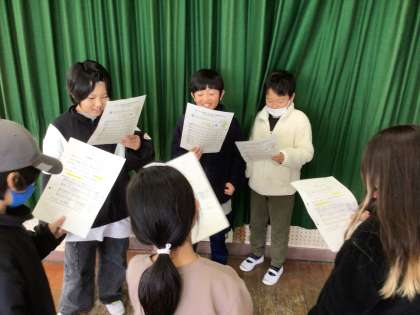 2/3 4年音楽2 公開日 2025/02/03 更新日 2025/02/03 各学年から 「パレード ホッホー」のアとイの旋律の重なりの部分もつられることなく歌えるようになってきました。「もみじ」では、前半8小節の輪唱の部分を練習をしました。