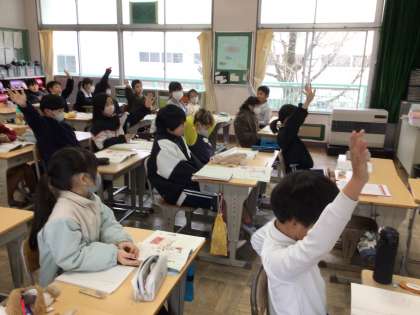 「自分なら、どちらを選ぶか」の学習です。2枚のいちご祭りのポスターを比べて、よいと思う方を選び、相手が納得するような理由を考える学習です。2枚のポスターに対する子ども達の第一印象は五分五分でした。みなさんは、どちらのポスターがよいと思いますか。