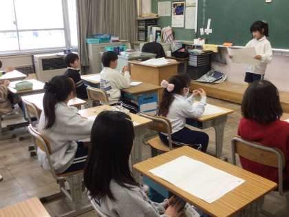 2/4 3年生国語 公開日 2025/02/04 更新日 2025/02/04 各学年から 3年生国語で、クラスの思い出作りのために、一人一人考えて発表しました。発表されている考えや、その理由がわかりやすいかどうかを聞きました。