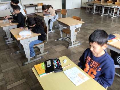 2年生国際学級の算数でも、「1000をこえる数」の学習をしています。今日は1000を10こ集めた数が一万になることも学習しました。