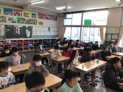 毎週木曜日の朝はフッ化物洗口の日です。軽快な音楽に合わせて口内洗浄をしました。