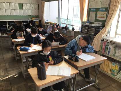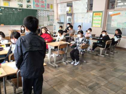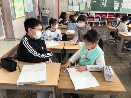 2/6 5年生算数 公開日 2025/02/06 更新日 2025/02/06 各学年から 速さの学習です。今日は、速さと道のりの手がかりを使って、かかる時間を求めました。問題を解く前に、どのようにすれば求められそうかペアで確認し合うことで、自分で式を立てて解ける子が増えました。友達の方を向いて、目と耳で考えを聞く姿はさすが5年生です。