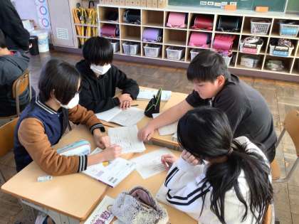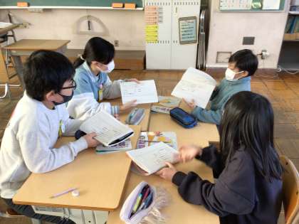 2/6 5年生算数2 公開日 2025/02/06 更新日 2025/02/06 各学年から 一人一人問題を解いた後、班で自分の考えを伝え合いました。自分のノートを見せながら自分の考えを分かりやすく説明していました。また、友達の考えを聞いて「どうしてそう考えたの?」ともっと詳しく聞こうという意欲的な姿も見られました。