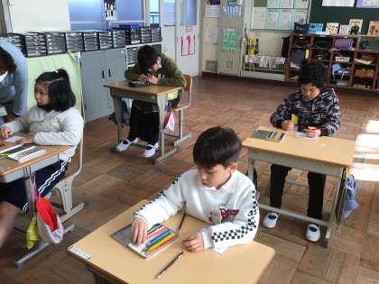 7、8組の外国語の授業では、ALTの先生と一緒に「バレンタイン」について学習しました。カードを作ったり、お菓子について英語で発音したりしました。