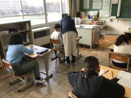 2/7 2年生算数国際学級 公開日 2025/02/07 更新日 2025/02/07 各学年から 2年生算数の国際学級でも「1000をこえる数」についての学習をしました。算数の友の問題を復習し、練習しました。