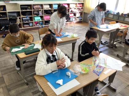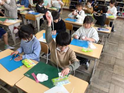 2/7 3年図工 公開日 2025/02/07 更新日 2025/02/07 各学年から 3年図工では、ねんどでマイハウスというテーマで進めています。前回の授業で粘土で作る自分の住みたい家の設計図(イメージ図)を描いているので、今日はそれをもとに粘土で家を作り始めました。