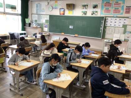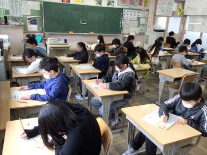 5年外国語では、ユニット7 Welcome to Japan! の単元テストを実施していました。リスニング問題を含め、集中して取り組んでいました。