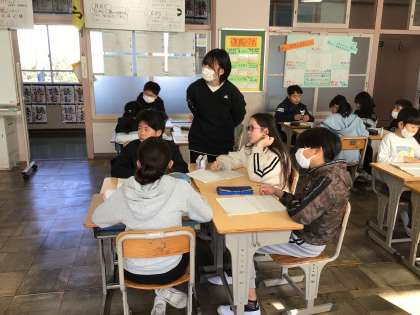 2つのものの関係を◯と△を使った式で表す学習です。まずは和暦と西暦の関係を表で調べて、◯や△を使った式に表すことを考えました。具体的な数字だと式を立てられるものの◯や△で表すとなると難しく感じる子どももいましたが、友達と話し合うことで理解することができました。