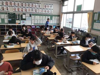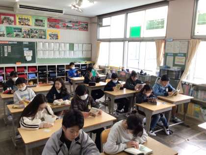 週明け元気よく登校してきました。8時半のチャイムで静かに読書が始まりました。今週も落ち着いた雰囲気で一日がスタートできました。