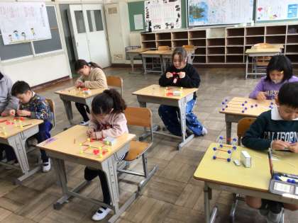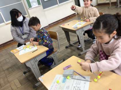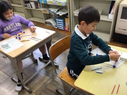 2/17 2年生算数国際 はこの形 公開日 2025/02/17 更新日 2025/02/17 各学年から 昨日は6つの面を組み立てて箱を作った子供たちでしたが、今日はひごと粘土玉で箱をつくりました。ひごは辺を表し、粘土玉は頂点を表すことをすぐに気づいた子供たち。これまでの学習の成果を感じました。直方体を作った後はもっと作りたいということで、面が正方形の立方体をあっという間に作ることができました。
