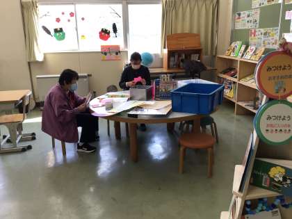 今日はご多忙の中、ちょこっとボランティアさんが季節の掲示物を作成しに来てくれました。早いものでもう3月。春らしいイラストを探しながら楽しく活動してくださいました。いつもありがとうございます。
