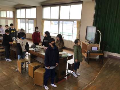 4年音楽では、歌練習の後、前回鑑賞で聴いた「茶色の小びん」をリコーダーで練習しました。初めてですが、以前より譜読みがはやくなりました。
