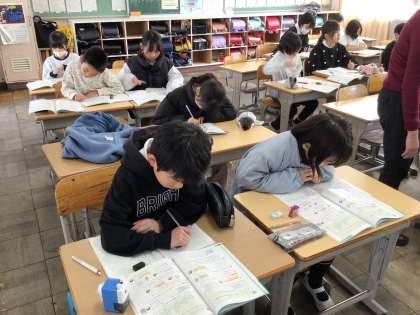 2/18 4年生算数1 公開日 2025/02/18 更新日 2025/02/18 各学年から 「変わり方」の学習です。ともなって変わる2つのものの変わり方を表で調べ、その2つのものの関係を式に表す学習をしました。