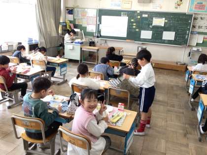 2/18 給食の時間 公開日 2025/02/18 更新日 2025/02/18 特別活動 今日の献立はミートソースかけ、牛乳、ウインナー、フレンチサラダです。 今日は洋食メニューです。フレンチサラダのドレッシングは給食センターで手作りしています。レモン果汁の酸味でさっぱりとした味わいです。 ミートソースをソフトめんと上手に混ぜて食べていました。