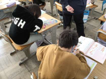 2/19 3年生書写 公開日 2025/02/19 更新日 2025/02/19 各学年から 3年生書写では、今日は書写ノートを使って硬筆を行いました。今まで学習したことを復習しながら進めました。今日で書写ノートの全てのページが終わることができました。