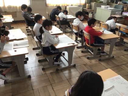 1年生国語では、「小学校のことをしょうかいしよう」の学習をしています。今日は、紹介したいことを考えて、文をつくりました。春、夏、秋、冬にどんな出来事があったか、思い出しながら書きました。