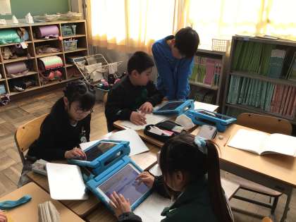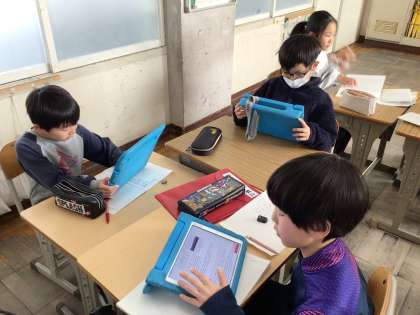 「道具のうつりかわり」の学習です。道具がどのように変化してきたのかを学習用タブレットで調べました。たくさんある情報の中から必要な情報を選ぶことが大切です。