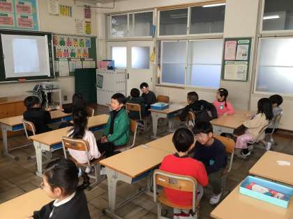 アドジャンのかけ声に合わせて一斉に好きな数だけ指を出し、指の数の合計で答える内容が変わっていきます。どの学級もすごく盛り上がっていました。