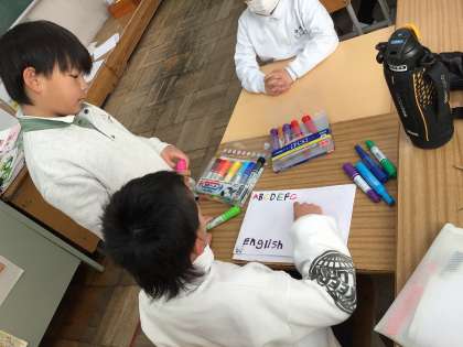 お世話になった先生方へのお手紙のプレゼントを作りました。外国語を教えてくださっているALTの先生へのお手紙の表紙にはアルファベットや英語の言葉を調べながら書きました。渡す相手が喜ぶように工夫できました。