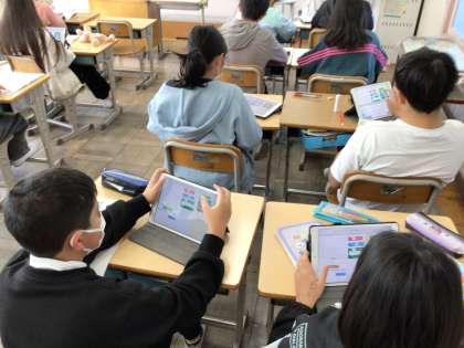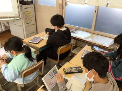 2/25 5年算数2 公開日 2025/02/25 更新日 2025/02/25 各学年から 5年算数では、正多角形の定義などを復習した後、「正多角形をかくプログラムをつくろう」というめあてで学習を進めていました。教科書のQRコードを読み取り、タブレットでプログラミングをしていきます。先生の説明を聞いて、集中して取り組んでいました。